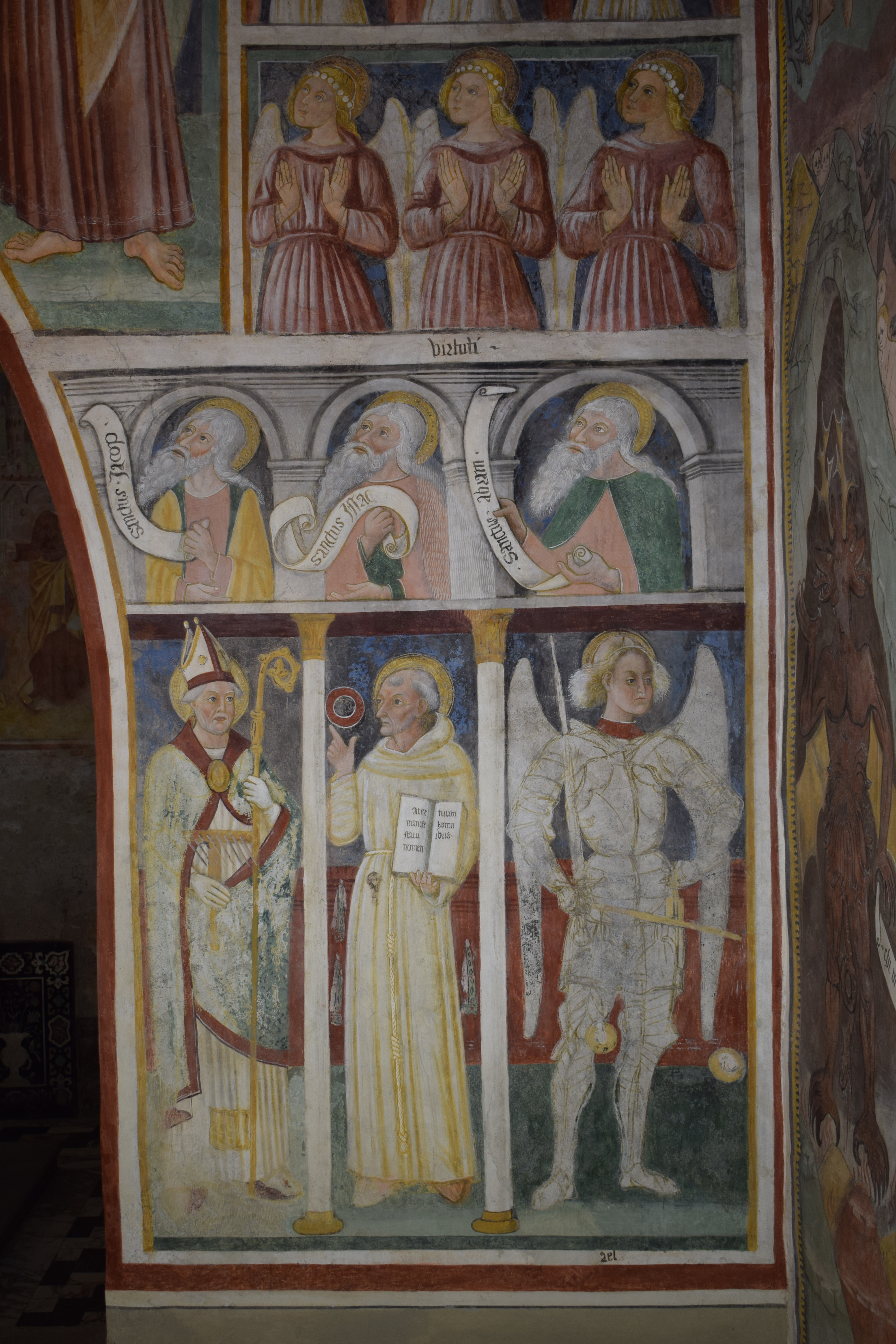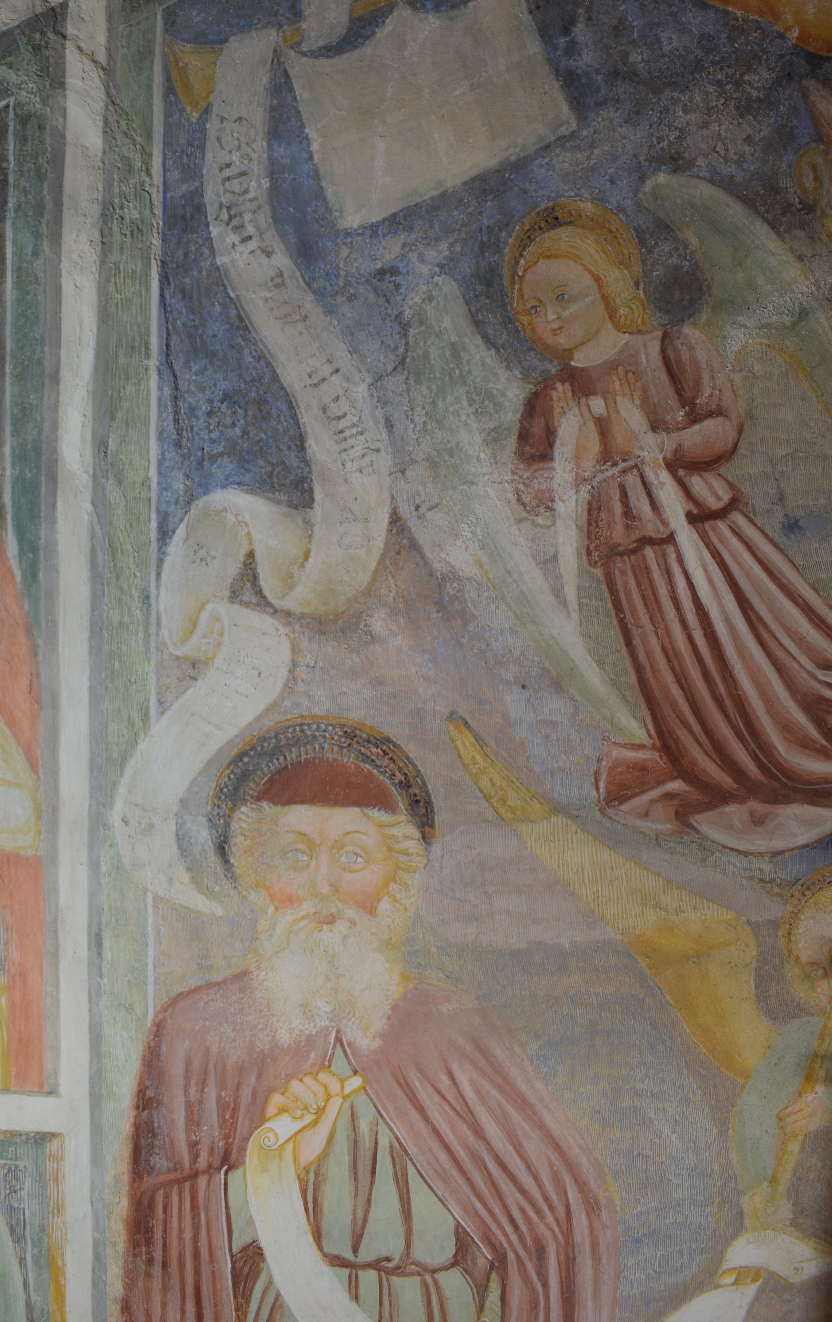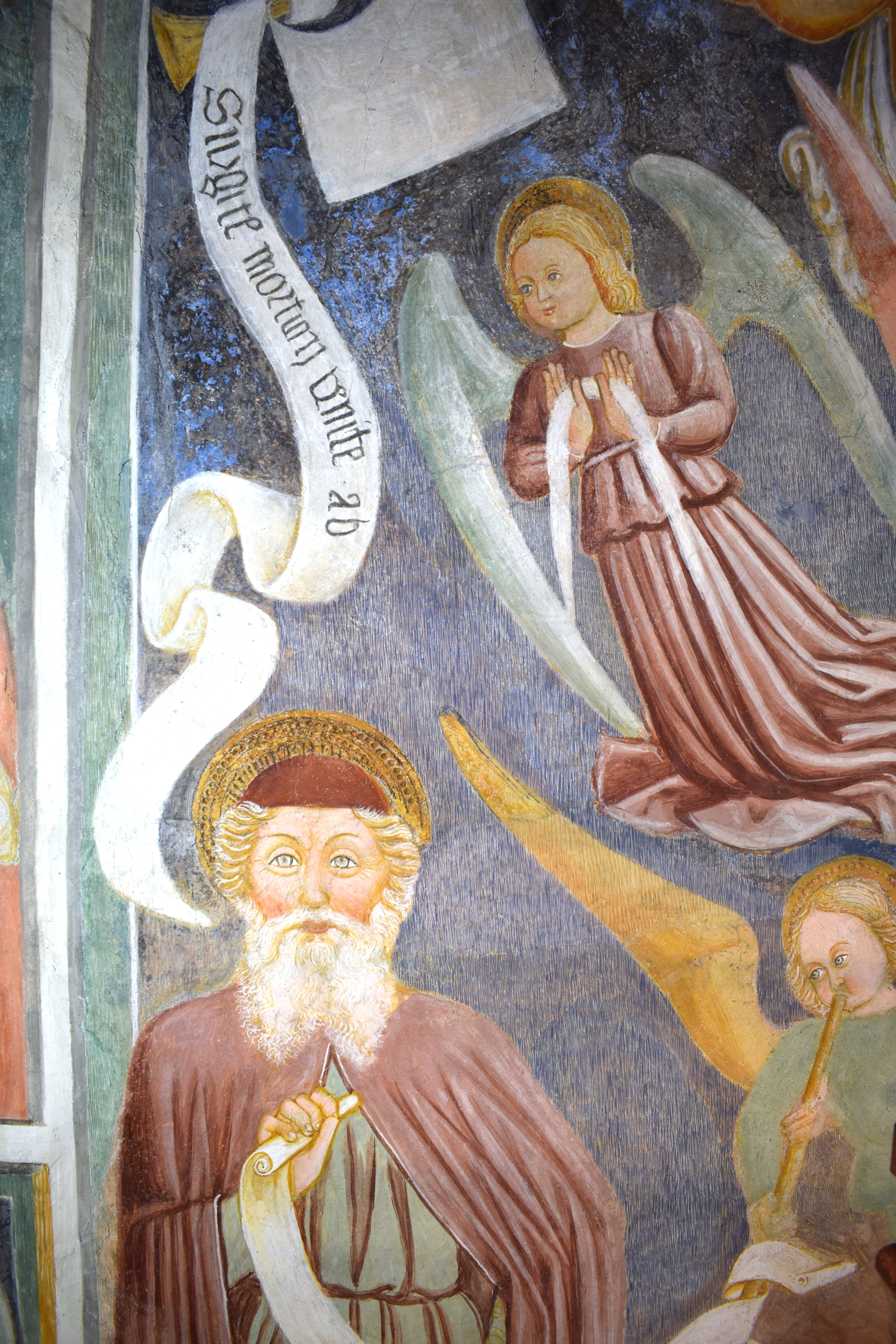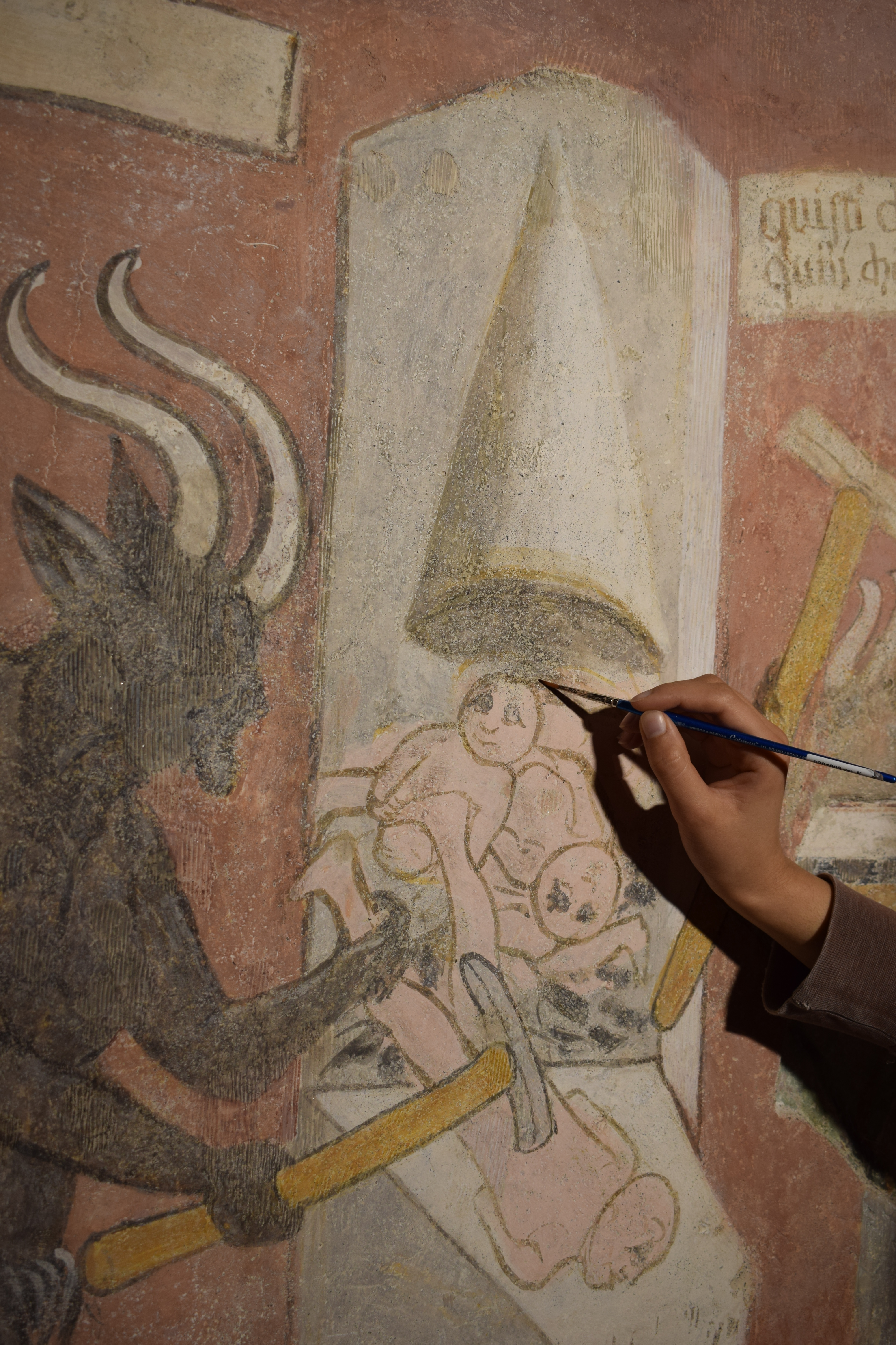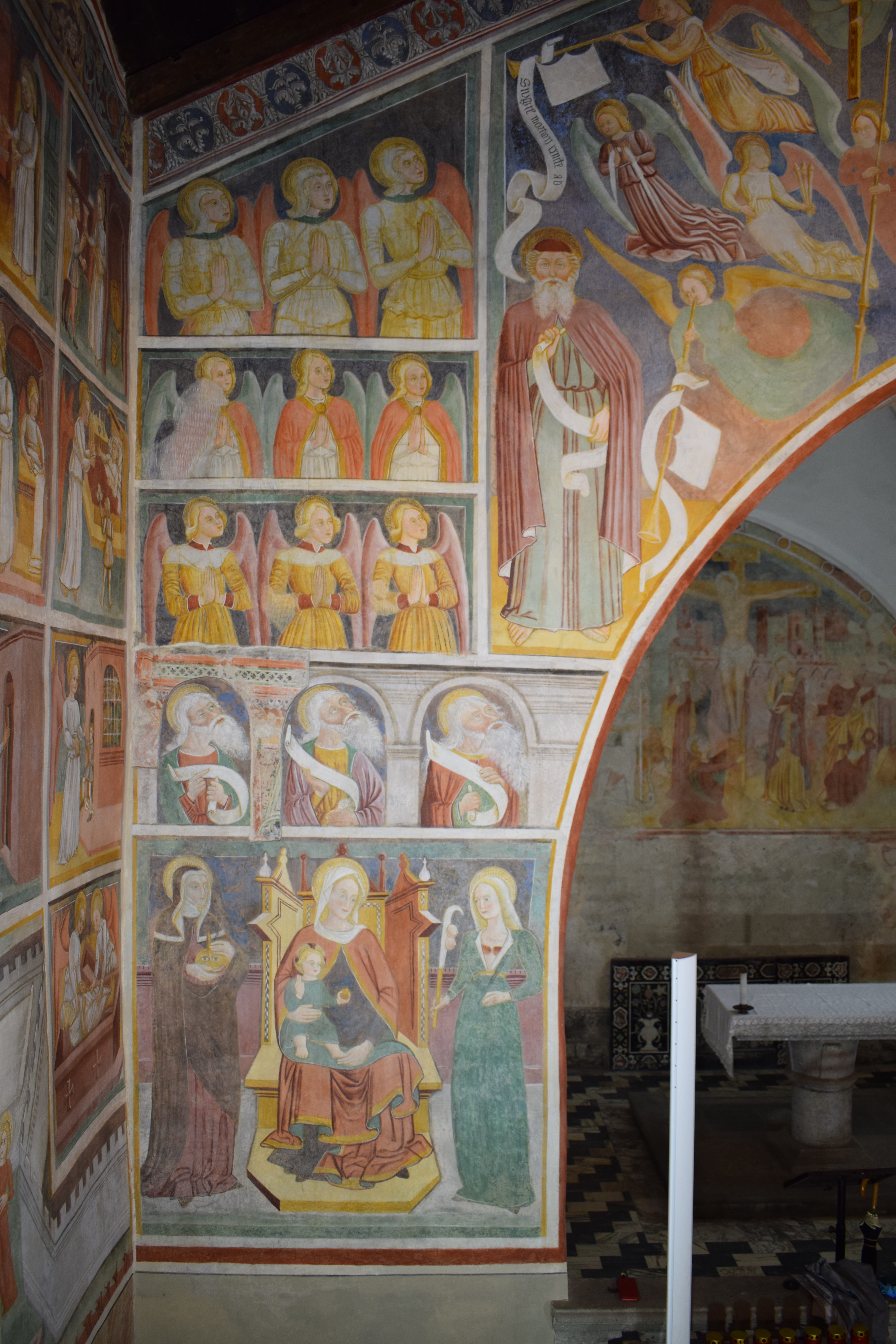L’intervento di restauro ha riguardato il ciclo di affreschi interni risalenti alla metà del sec. XVI. Vi sono raffigurati: la Crocifissione nell’abside, Cristo Pantocratore con teorie di angeli e santi sull’arco trionfale, il Paradiso e l’Inferno lungo le pareti della navata.