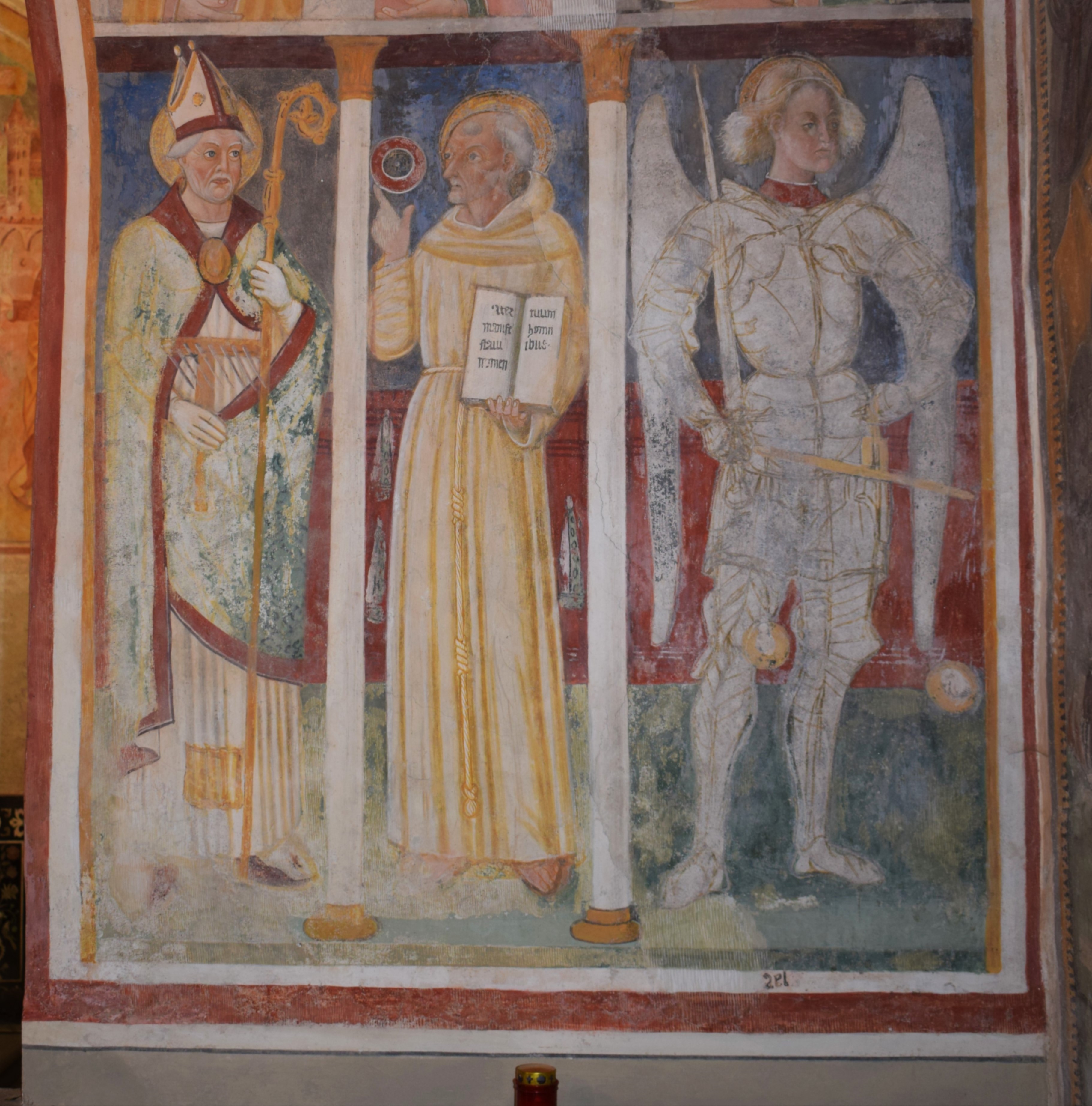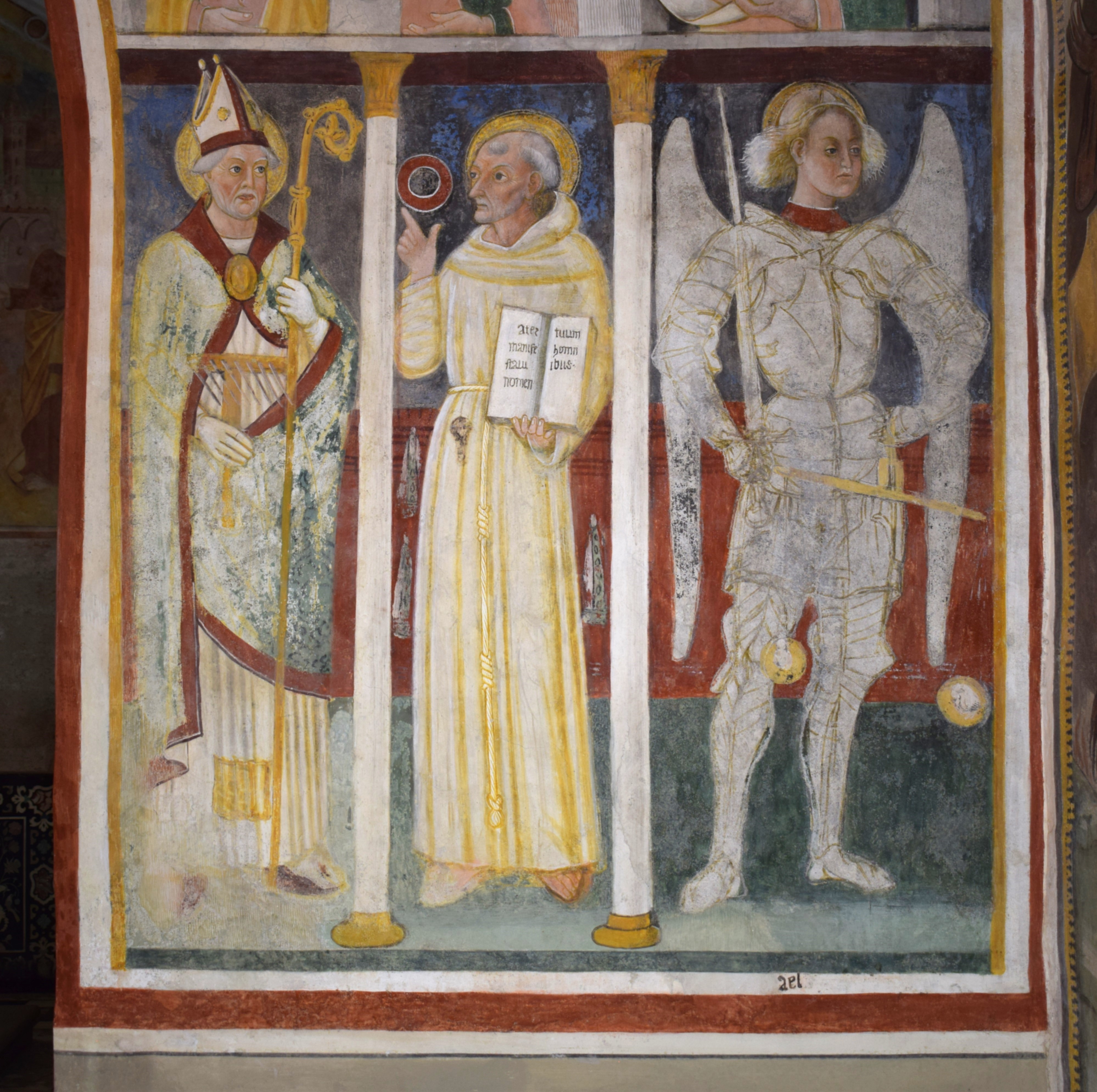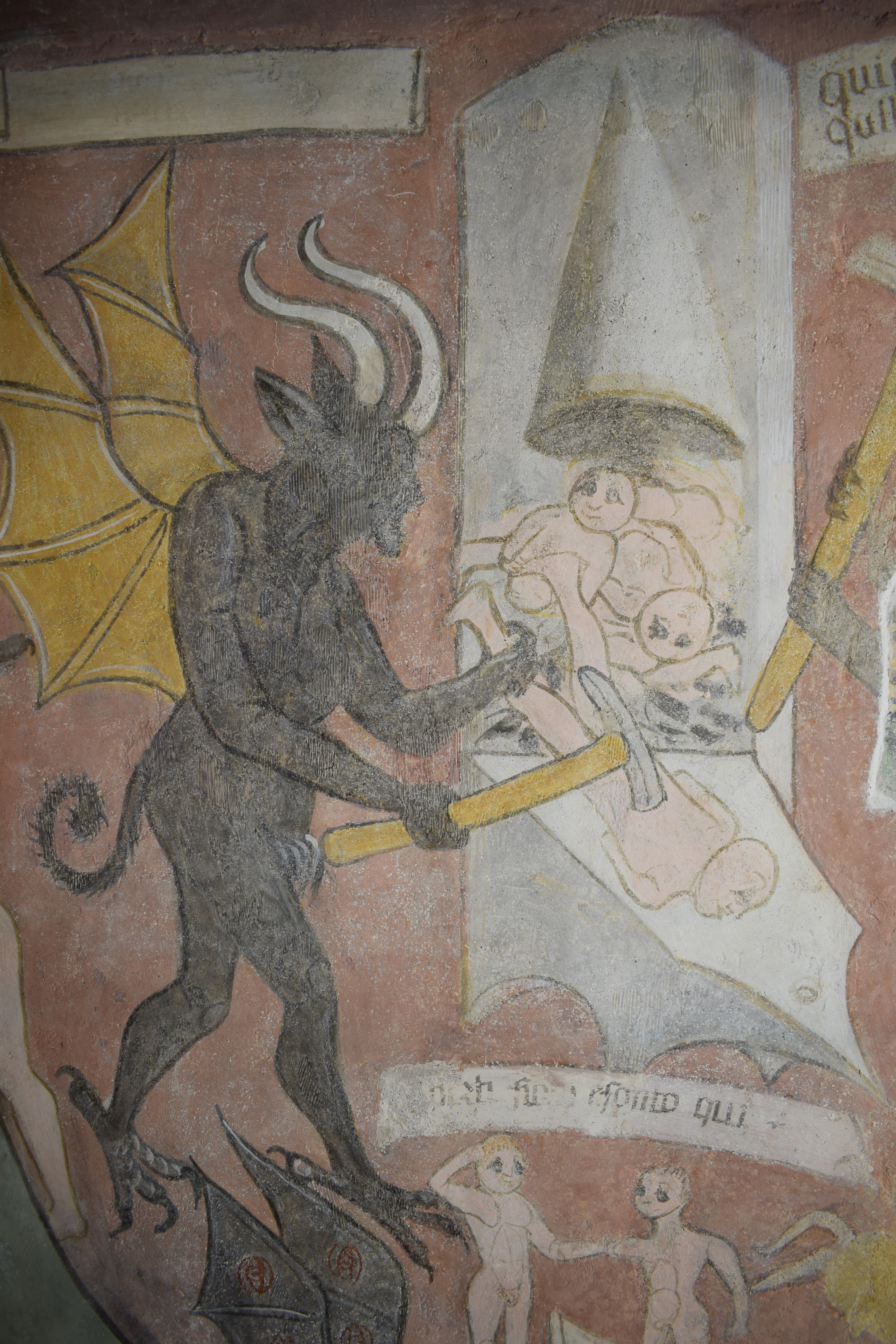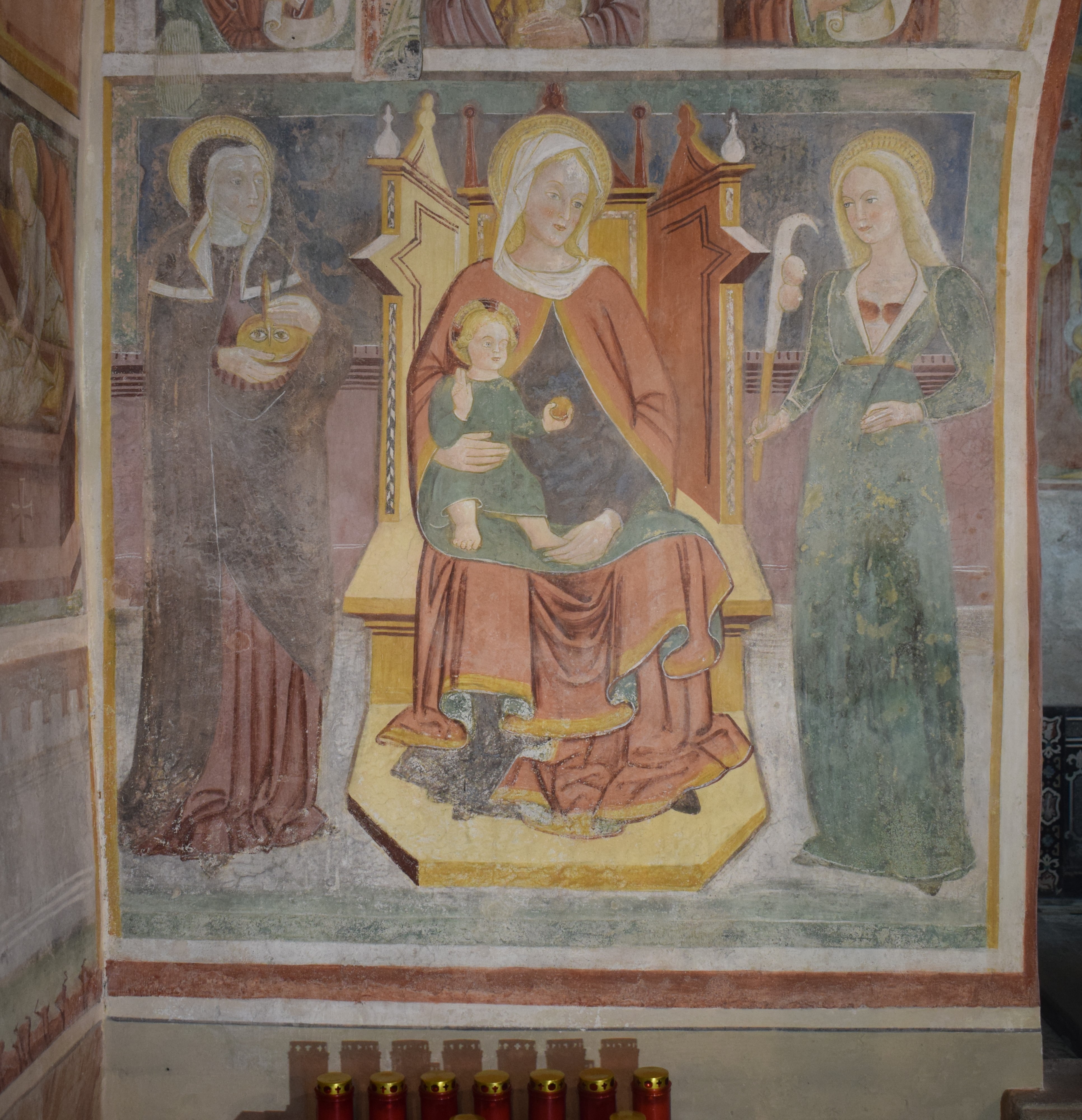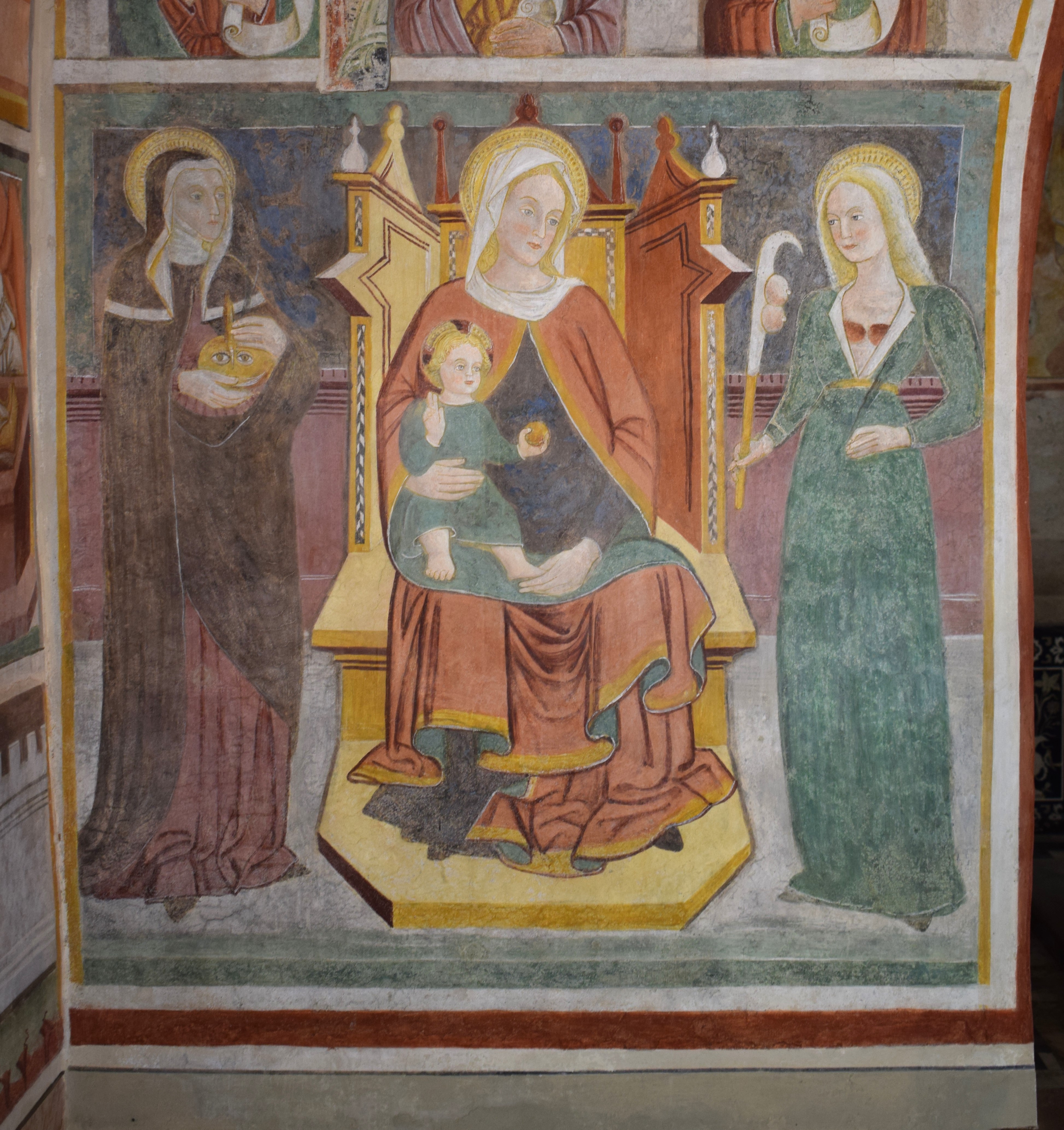 L’intervento di restauro ha riguardato il ciclo di affreschi interni risalenti alla metà del sec. XVI. Vi sono raffigurati: la Crocifissione nell’abside, Cristo Pantocratore con teorie di angeli e santi sull’arco trionfale, il Paradiso e l’Inferno lungo le pareti della navata.