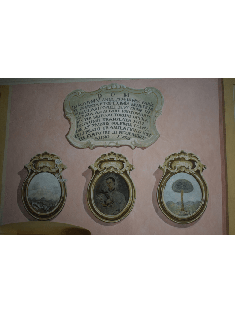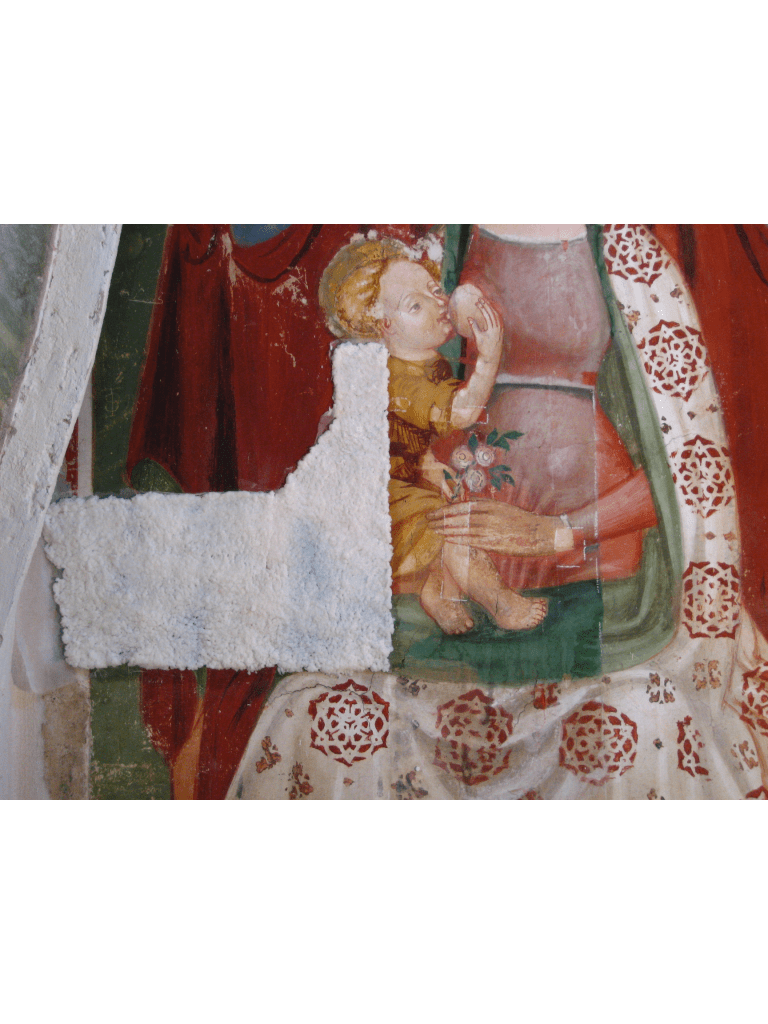 Particolarmente pregevole è l’affresco absidale raffigurante una Madonna del latte risalente al sec. XVI. L’intervento di restauro ha permesso di portare alla luce le cromie originali, attraverso l’asportazione delle ridipinture sovrammesse nei secoli scorsi.